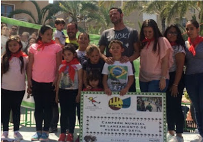 Francisco Tomás en el momento del lanzamiento y a la dcha el pódium infantil con Lucas Mingorance